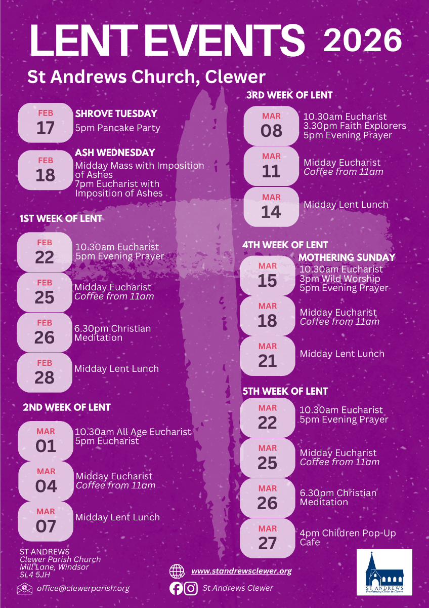 ![]() WELCOME Mothering Sunday 2026 The first reading is 1 Samuel 1.20-end, Hannah has been unable to conceive that she prayed for a Son, promising that she would dedicate him to God if her prayers were answered. The gospel reading is John 19.25-27, as he’s dying on the cross, Jesus makes provision for his mother, Mary. Jesus spoke these motherly words about Jerusalem: “How often have I desired to gather your children together as a hen gathers her brood under her wings.” On this Mothering Sunday let us rejoice that Jesus feels this tender, protective, motherly love for each one of us, too. Showing motherly love is not limited to those with children. On mothering Sunday, we remember all those who mother us spiritually. Any individual in a church community will have been nurtured and supported by the hard work and sacrifice made by Christians before them. May we, to, show this same kind of motherly love and build up and encourage others in the faith. Canon Brian To explore the story of Hannah, from today’s Old Testament reading, further read our Lent 3 study. SUNDAY SERVICES 15TH MAR MOTHERING SUNDAY 10:30am Parish Eucharist 3:00pm Wild Worship 5:00pm Evening Prayer COLLECT God of compassion, whose Son Jesus Christ, the child of Mary, shared the life of a home in Nazareth, and on the cross drew the whole human family to himself: strengthen us in our daily living that in joy and in sorrow we may know the power of your presence to bind together and to heal; through Jesus Christ your Son our Lord, who is alive and reigns with you, in the unity of the Holy Spirit, one God, now and for ever. Amen READINGS 1 Samuel 1.20-end In due time Hannah conceived and bore a son. She named him Samuel, for she said, ‘I have asked him of the Lord.’ 21 The man Elkanah and all his household went up to offer to the Lord the yearly sacrifice, and to pay his vow. 22But Hannah did not go up, for she said to her husband, ‘As soon as the child is weaned, I will bring him, that he may appear in the presence of the Lord, and remain there for ever; I will offer him as a nazirite for all time.’ 23Her husband Elkanah said to her, ‘Do what seems best to you, wait until you have weaned him; only—may the Lord establish his word.’ So the woman remained and nursed her son, until she weaned him. 24When she had weaned him, she took him up with her, along with a three-year-old bull, an ephah of flour, and a skin of wine. She brought him to the house of the Lord at Shiloh; and the child was young. 25Then they slaughtered the bull, and they brought the child to Eli. 26And she said, ‘Oh, my lord! As you live, my lord, I am the woman who was standing here in your presence, praying to the Lord. 27For this child I prayed; and the Lord has granted me the petition that I made to him. 28Therefore I have lent him to the Lord; as long as he lives, he is given to the Lord.’ She left him there for the Lord. John 19.25-27 And that is what the soldiers did. Meanwhile, standing near the cross of Jesus were his mother, and his mother’s sister, Mary the wife of Clopas, and Mary Magdalene. 26When Jesus saw his mother and the disciple whom he loved standing beside her, he said to his mother, ‘Woman, here is your son.’ 27Then he said to the disciple, ‘Here is your mother.’ And from that hour the disciple took her into his own home. Sermon Sunday 8th Mar 2026 Morning (Canon Brian) Our Lent 2026 study Each Monday, during lent, along with the weeks What’s On, we will share with you a weekly study on a particular woman in the bible, the reference for you to look up, a commentary and a series of questions to reflect on. We hope you enjoy this way of Growing Faith Together here in Clewer and friends connected online. If you have any comments or questions, please feel free to contact via the office email: office@clewerparish.orgLent 1 – The Midwives Lent 2 – Rahab Lent 3 – Hannah NOTICES PLEASE PRAY FOR The Suffering: Jennifer, John B, Matt, Stef, and Joanna. Refugees, Prisoners, the Homeless and those who mourn. The Departed: All those recently departed this life and those whose anniversaries fall at this time. Baptisms: Weddings: Community Prayers: Clewer Green School, Mrs Branch, Mr Seymour, and all the staff, pupils, staff and governors. Busy Buttons CORE Charity and for all the work that they do. For all our Care Homes, for the safety of residents and staff. We pray also for Windsor Christian Action, and the work of the Homeless Project, Street Angels, and FoodShare, under the umbrella of the Alma Beacon Hub. Please pray for the PCC as they work through the Mission Action Plan and discern God’s mission in Clewer. Parish Cycle of Prayer: Please pray for all who live or work in All Retail Premises, Mill Stream Houseboats, Boatyard, Windsor Race Course, Forest House Veterinary Group, Petworth Court, Care Homes (Sandown Park, Queens Court, Mountbatten Grange and Winton House). Anglican Cycle of Prayer: please pray for The Anglican Church of Kenya. Please pray also for the Churches in these Dioceses: Udi (Nigeria), Northern Uganda, Ughelli (Nigeria), Ukwa (Nigeria), Umuahia (Nigeria), and Upoko o Te Ika (Aotearoa, New Zealand and Polynesia). Please continue to pray for and support your neighbours and families. If you would like anyone added to our Prayer List please email the office office@clewerparish.org SERVICES FOR THE NEXT FEW WEEKS Morning Prayer on Wednesdays at 8.00am in Church No mid-week Evening Prayer during Lent Prayers & Bears – Early Years Liturgy on Fridays at 9.30am in Church The church is open for private prayer 10.00am – 5.00pm daily Wed 18 Mar 12:00pm Midday Eucharist coffee from 11am Sun 22 Mar – Lent 5 10:30am Parish Eucharist 5.00pm Evening Prayer Wed 25 Mar 12:00pm Midday Eucharist coffee from 11am Sun 29 Mar – Palm Sunday 10:30am Eucharist 3.00pm Worship Explorers Daily (30, 31 Mar, 1 Apr) 12:00pm Midday Prayers 7.00pm Eucharist, followed by Compline Thu 2 Apr – Maundy Thursday 